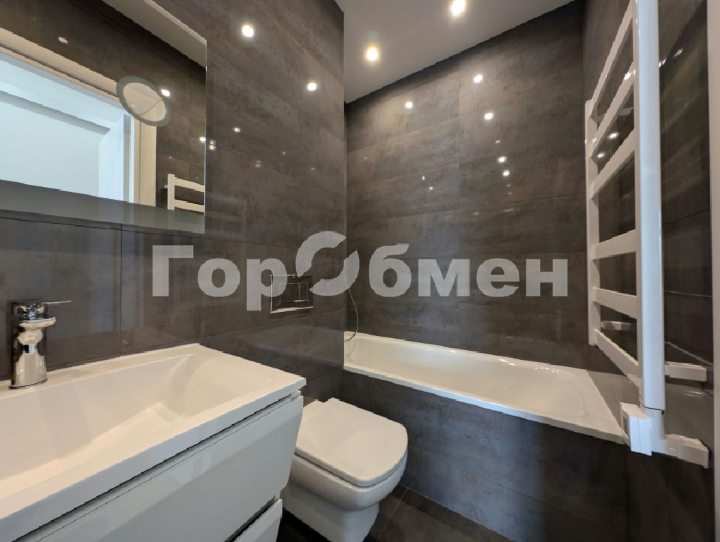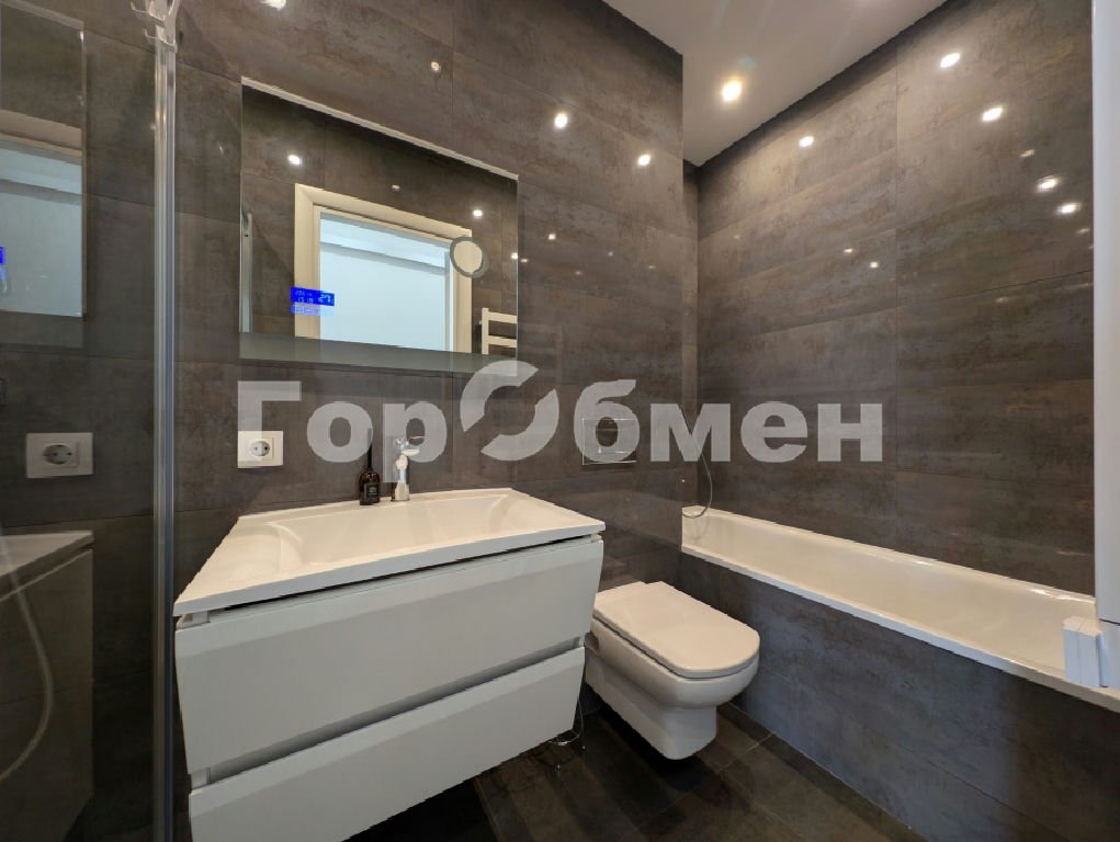 Санузел с полноценной ванной и отдельной душевой зоной.